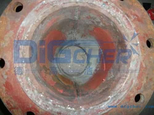 4、對于結(jié)晶嚴(yán)重的磷化管道,可以先使用錘子敲打管道外部,使結(jié)晶物疏松,再使用高壓清洗機清洗,以達到提高清理速度的目的。